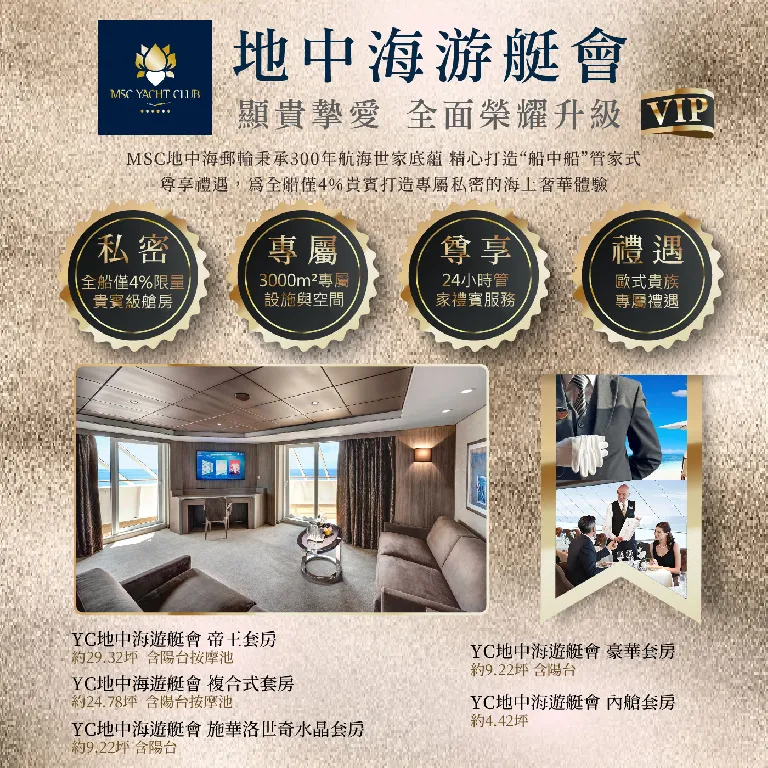 地中海遊艇會套房 專屬禮遇: