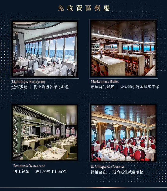 ★郵輪航程期間的設施開放、派對活動與付費服務價格項目等等,如有所調整,請依船上公告為準!