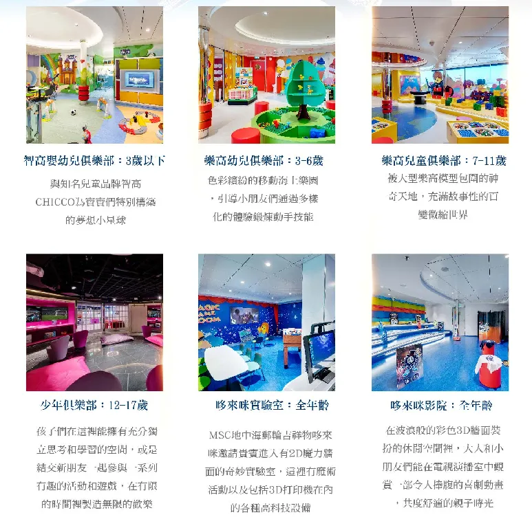 6.本行程各航點,包含起訖點基隆港的抵達、靠泊及離港等時間,須依據天候海象或港口管制等狀況,有隨時異動之可能,各時間點須依MSC地中海郵輪公告或日報為準。