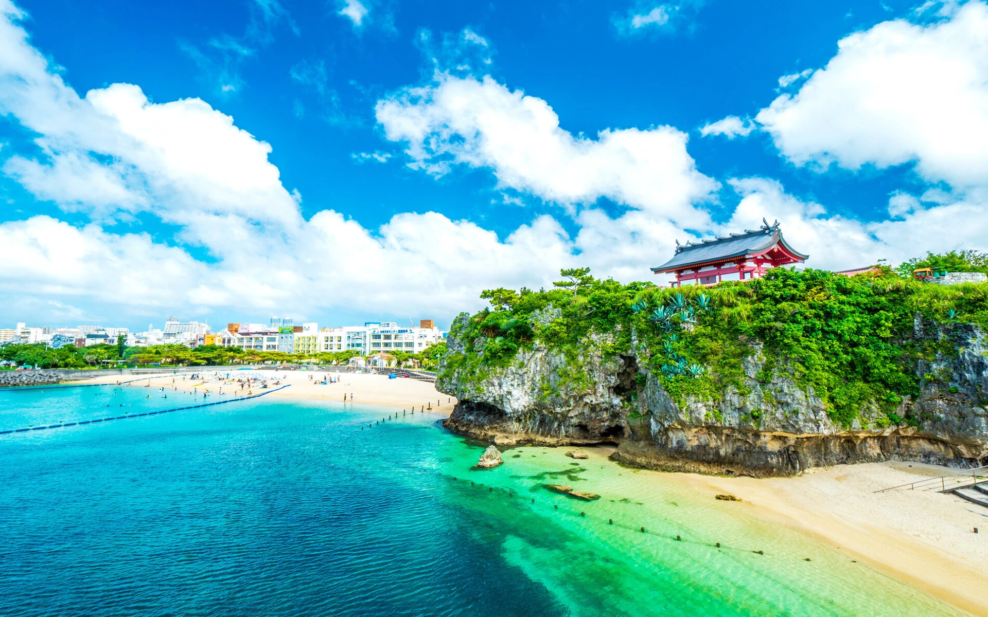 【那霸市】位於沖繩島南部西海岸,琉球列島上最大的城市,現為沖繩縣的政治、經濟中樞。由於近年來的沖繩地區旅遊事業發達,位於市區的國際通大街及首里城成為最有名的景點。古琉球國的都城首里位於該市東郊-首里城、沖繩臨濟宗的總寺院園覺寺遺址、琉球王玉陵墓等處都能夠讓人領略到琉球王朝時代的風貌。